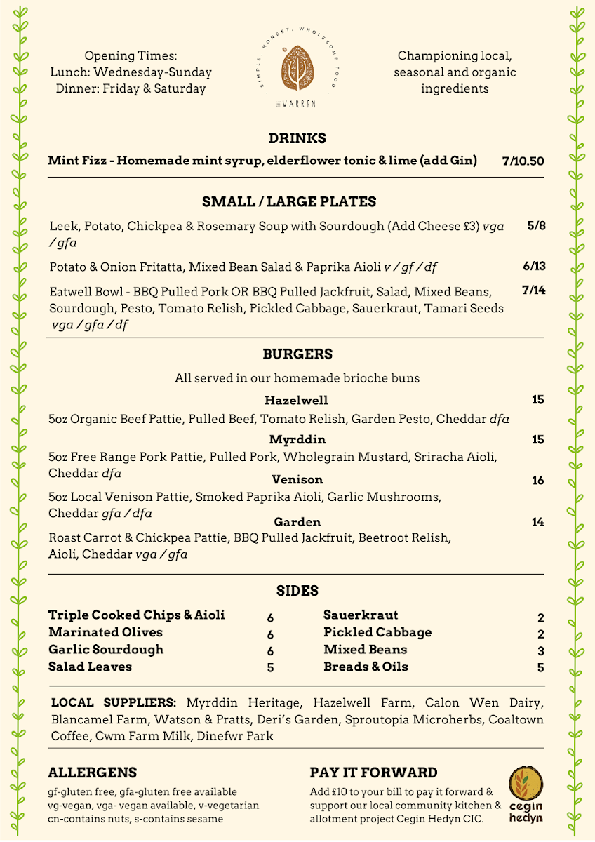 The Warren Carmarthen Menu Review